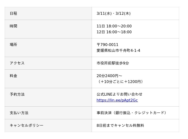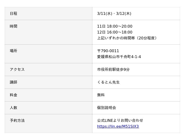 占い師養成CAMPは毎週オンラインで説明会を行っておりますが、このたび松山校で直接個別説明会を行います。