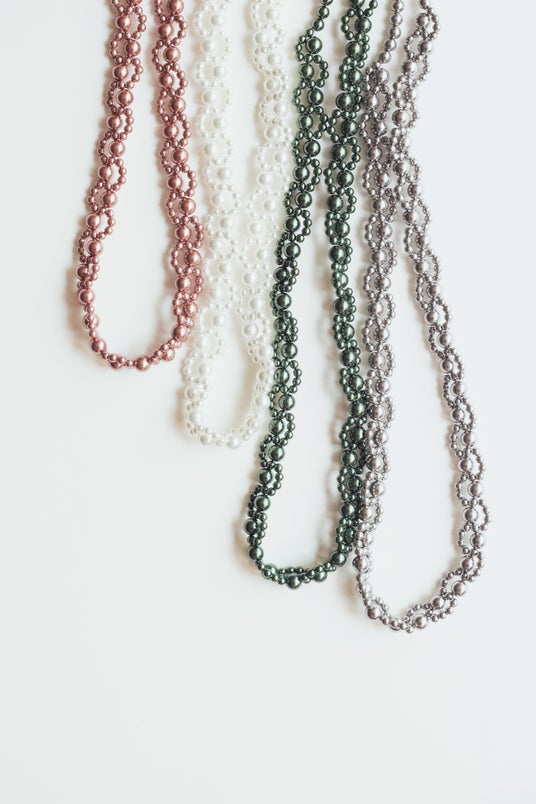 ドレススタイリングのアクセントや、チョーカーとしても使用可能。4色展開で、装いに合わせた多様な表情を楽しめるアイテムです。