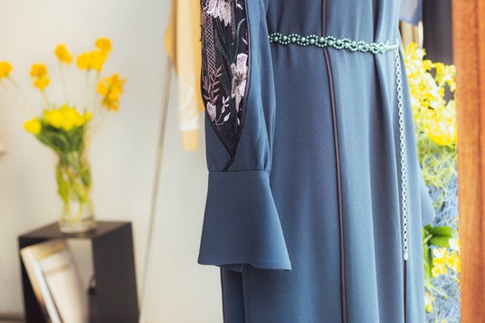 ミニマルなジャケット、ドレープに変化をもたらすスラックス、柔らかな落ち感を備えたドレスと、異なるアイテムで展開することで、同一の刺繍表現に多様な表情を与えています。セットアップから単品使いまで、オケージョンから日常へと自然に溶け込むシリーズです。