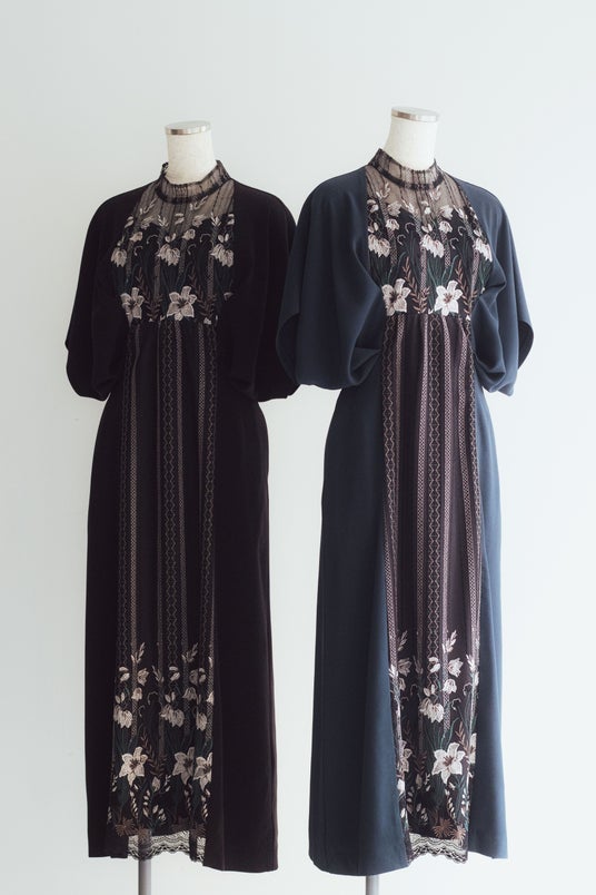 Classic lace dress(Black/Green)¥68,200税込
