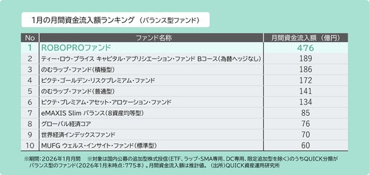 ※バランス型ファンドにおける月間資金流入の一例(2026年1月)