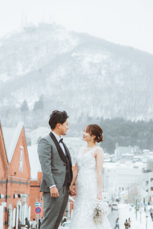 「金森倉庫」を舞台にした函館初のブライダルロケーションフォトがついに解禁。歴史とモダンが交差する赤レンガの街並みで、映画のワンシーンのような憧れの花嫁姿を叶えます。
