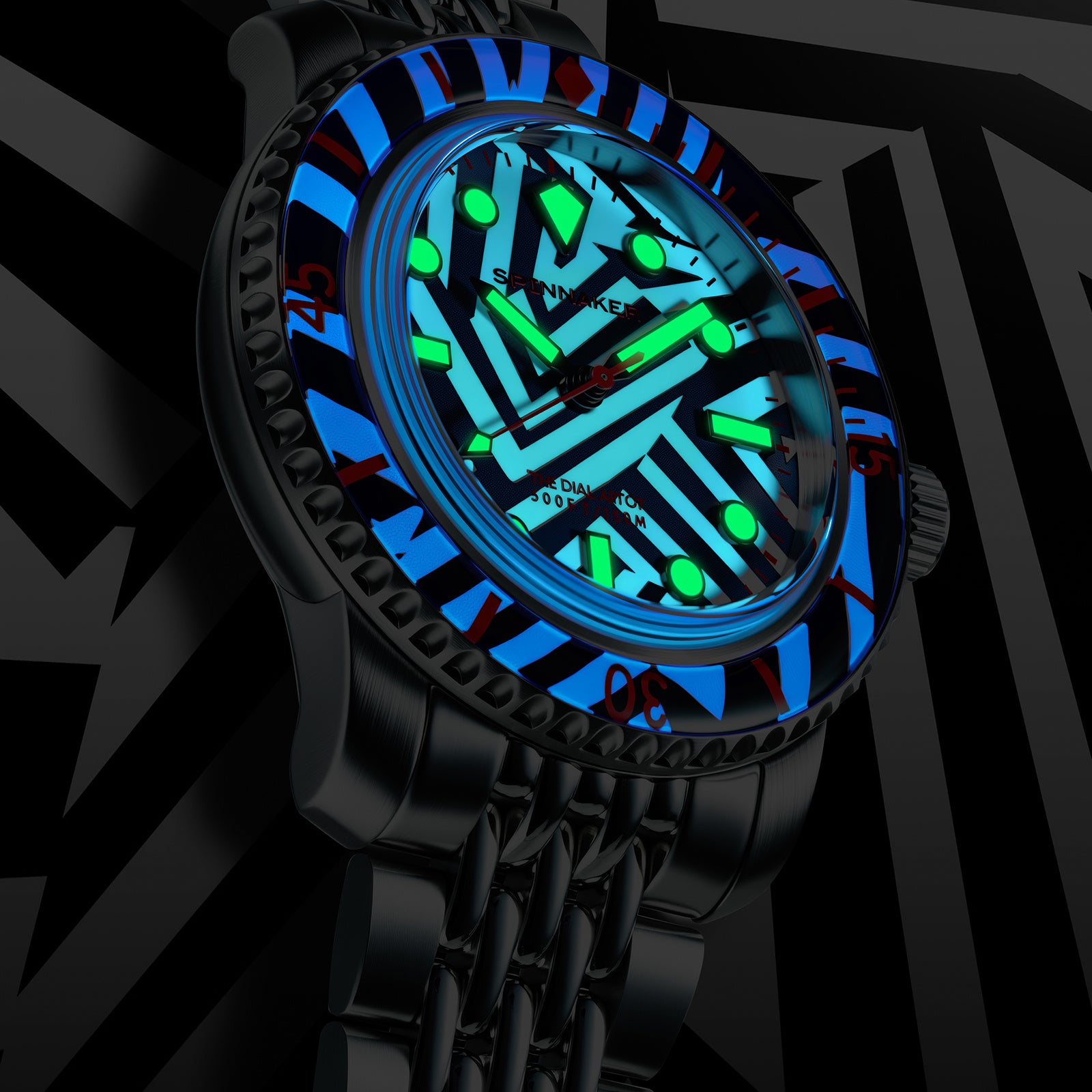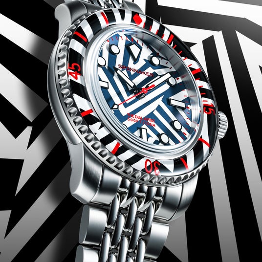 ラズル・ダズル迷彩デザインを採用したこのユニークなコラボレーションは、海洋の創意工夫に敬意を表するとともに、スピニカーのウォッチメイキングとクリス・アレクサンダーの芸術的センスが見事に融合した“身につけられるアート作品”と呼ぶべき一本です。