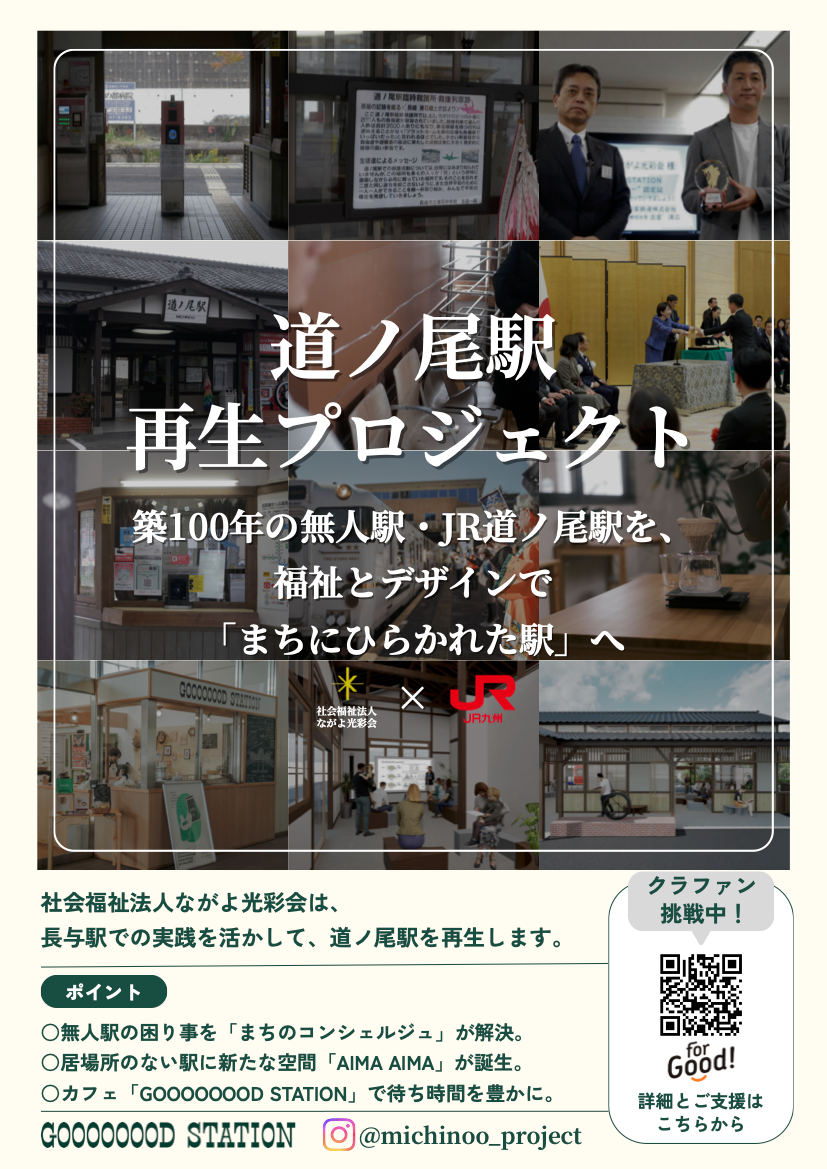 社会福祉法人ながよ光彩会(所在地:長崎県西彼杵郡長与町、理事長:貞松 徹)は、JR九州および設計・ブランディングチームと協働し、築100年を迎える無人駅・JR道ノ尾駅を再生するプロジェクトを始動しました。