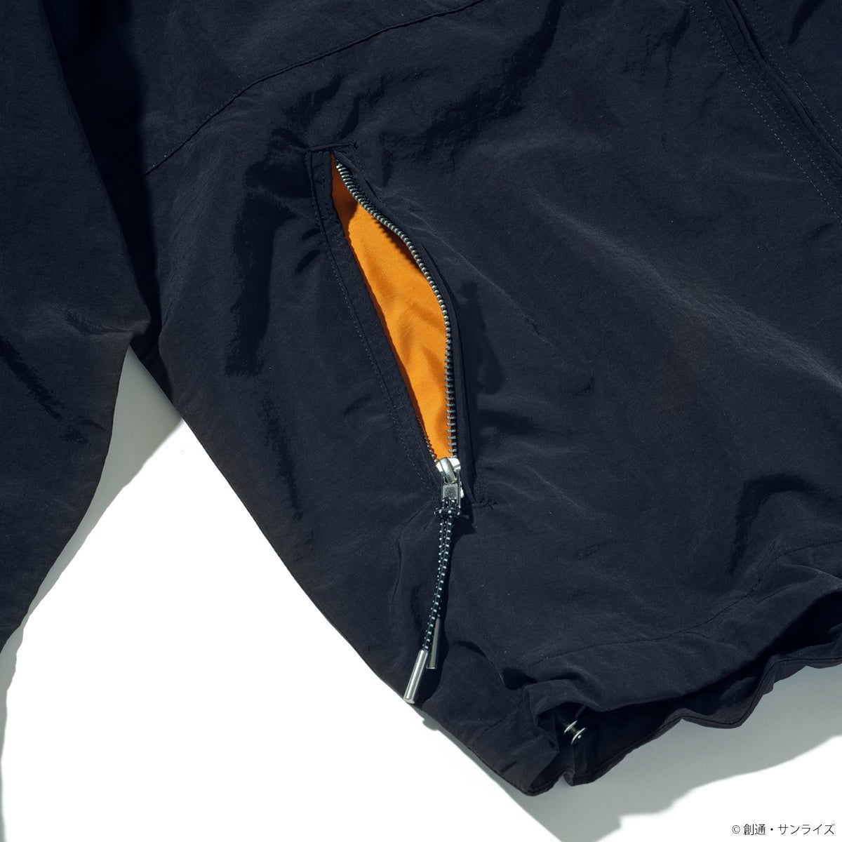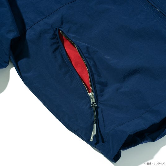 『機動戦士ガンダム 閃光のハサウェイ キルケーの魔女』、『機動戦士ガンダム 逆襲のシャア』より、軽撥水性を備えた、ワッシャーナイロンパーカーが登場。左胸、フード口に各々マークを刺繍、配色のポケット袋にて、さりげなく世界観を演出、ややゆとりのあるシルエット、袖に立体感の有るプリーツ、上下両方から開けられる W(逆開)ファスナー、裾の両サイドのドローストリングを絞る事により、丸みのあるシルエットへの演出も可能。表面に軽いシワ感のある素材は、薄手ながらしっかりとしたハリとコシが有り、春先におすすめのアイテムです。