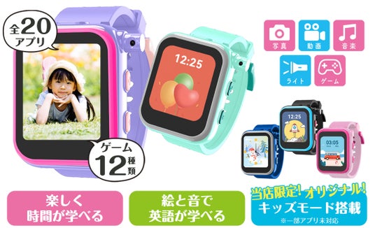 90度回転カメラでの自撮りや、PCから取り込んだ音楽再生、歩数計など、20種類のアプリでお子様の日常を豊かにする「キッズスマートウォッチ」。新一年生という新しい門出のギフトに、ぜひこの機会をご活用ください。