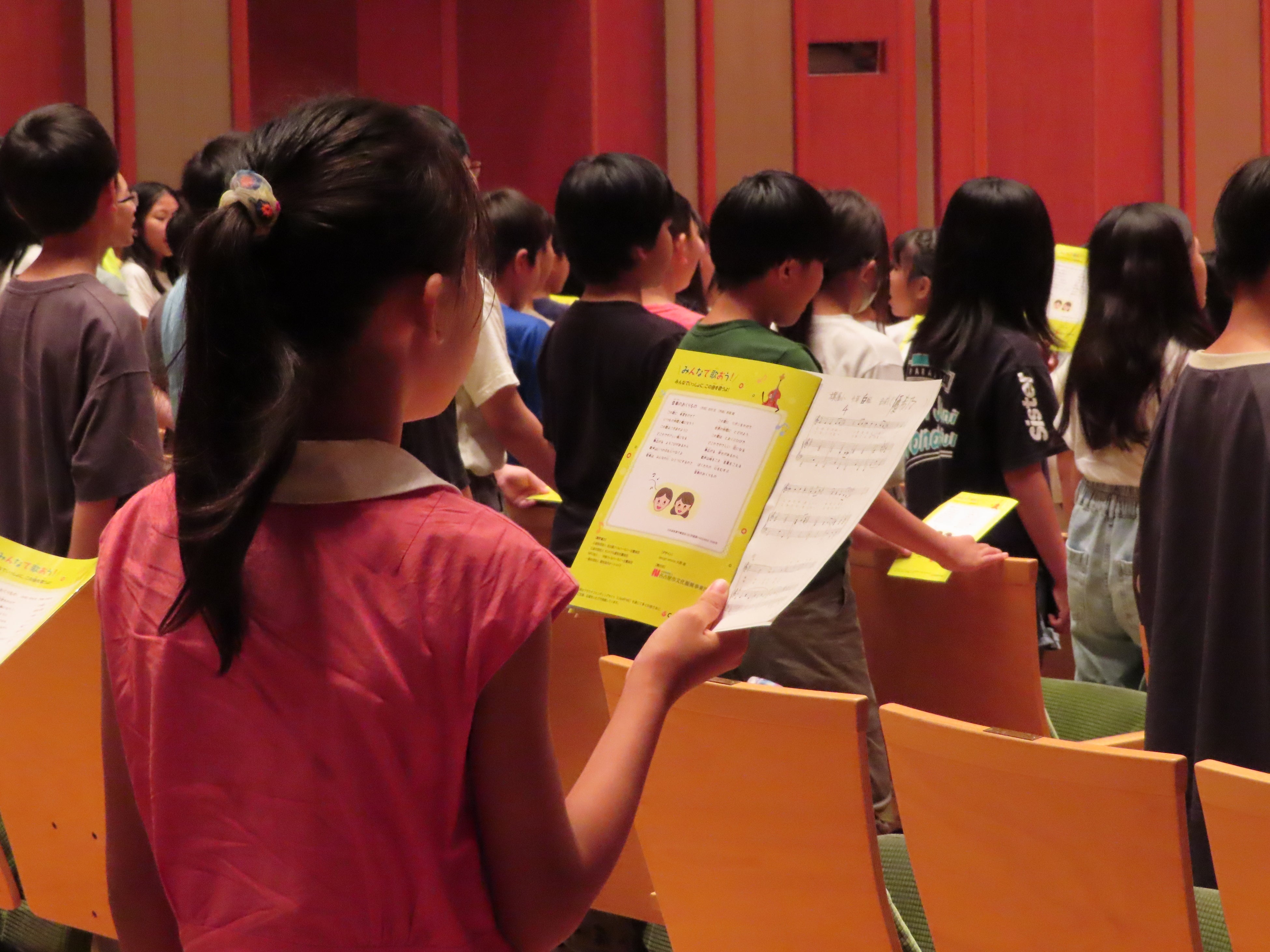 4.『歌う』オーケストラと歌おう合唱曲「音楽のおくりもの」を、会場の子ども全員がオーケストラの演奏に乗せて歌います。初対面の子ども同士でも、歌声で会場がひとつに重なる瞬間が生まれ、スタッフも毎回胸が熱くなります。