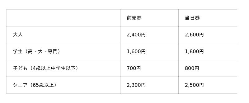 ※20名以上の団体でご観覧の場合、ご希望の方は団体割引料金(前売券料金)でご入場いただけます。