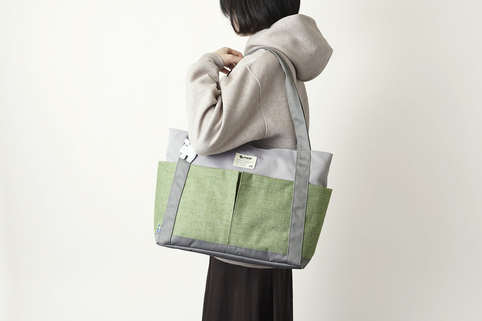バッグの企画・製造・販売を行う株式会社ティ・ツウ・オーは、北欧ブランド「moz(モズ)」より、メランジ素材の切り替えが特徴的な“COMBI - ZZEI”シリーズから今回、通勤・通学に最適な大容量トートバッグに、待望の新色「グレー×グラスグリーン」の新色が登場しました。都会的なグレーと、芽吹く草木を彷彿とさせる鮮やかなグラスグリーンのコントラストは、コーディネートに程よいアクセントと洒落感をプラスします。