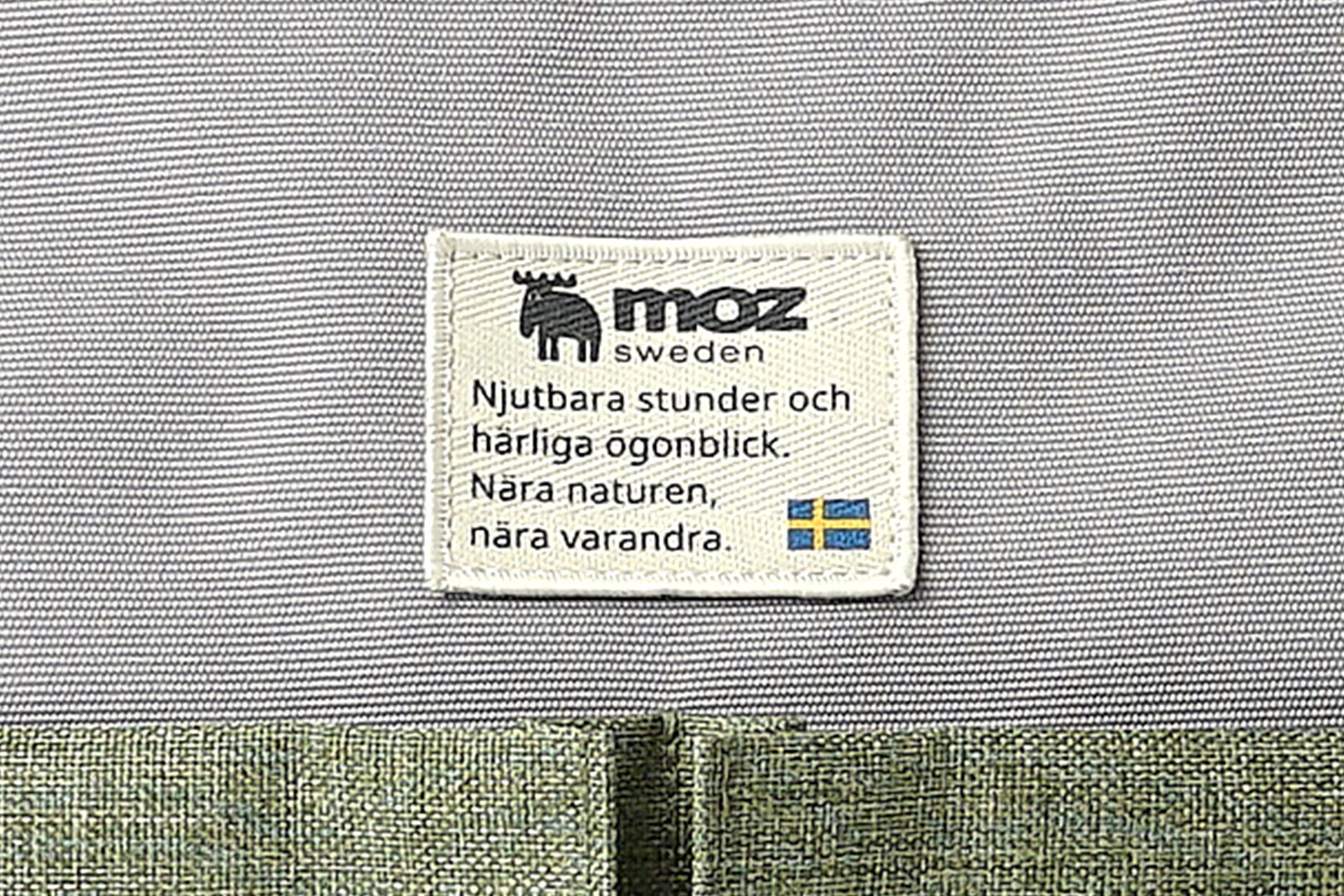 バッグのフロントに配された「moz」のブランドワッペンが、シンプルなデザインに愛らしいアクセントを添えています。
