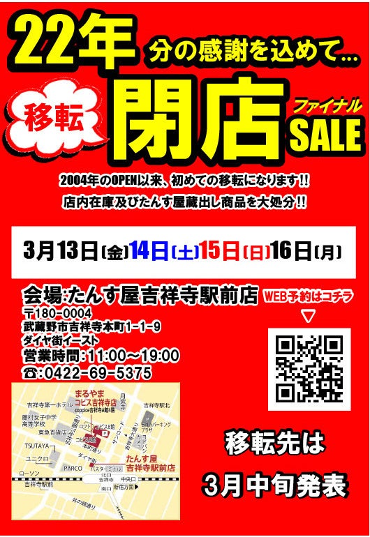 移転閉店セール【ご予約はこちら】