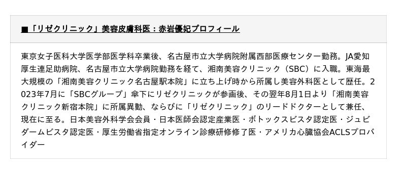 リゼクリニック 赤岩優妃医師