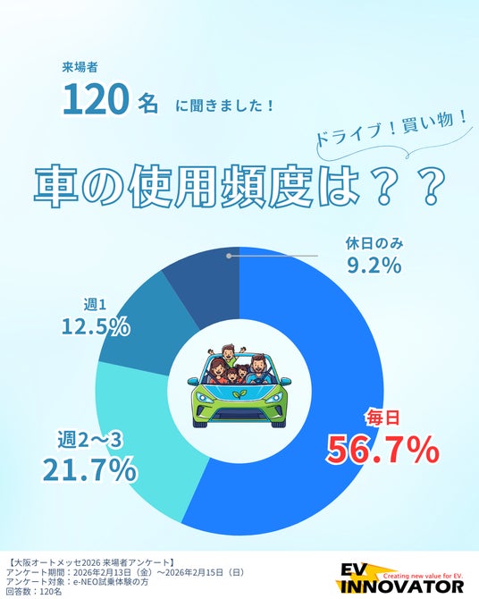 EV INNOVATOR(イーブイ イノベーター)(運営:スカイ・イノベーター株式会社/本社:東京都渋谷区、代表取締役:三浦 武郎)は、2026年2月にインテックス大阪で開催された西日本最大級の自動車イベント「大阪オートメッセ2026」内にて、体験試乗者を対象にしてアンケート調査を実施いたしました。