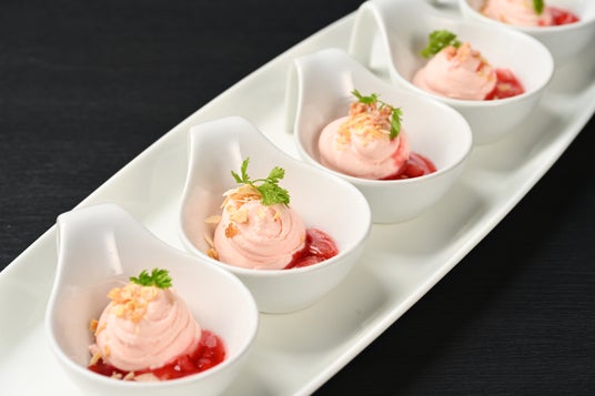 旬の苺を使った「フロマージュ・クリュ・オ・フレーズ」はなめらかで繊細な口どけのフレッシュチーズと、苺の甘酸っぱい風味が混ざり合って、上品な味わいに。見た目にも可憐で、食後を優雅に彩る春らしいデザートです。