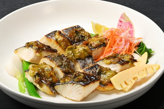やわらかく上品な旨みを持つ鰆を、ほろ苦く甘辛い風味のふき味噌で香ばしく焼き上げた「鰆のふき味噌焼き」は、鰆のしっとりとした身の食感が春の訪れを感じさせます。季節の風味をまとった和の味わいをご堪能ください。