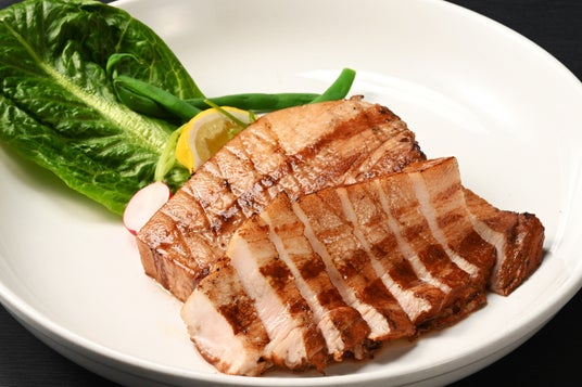 じっくりグリルした塩豚に、奥深い香りをもつプーアル茶の風味をまとわせた「プーアル茶風味の塩豚」。プーアル茶ならではのまろやかでほのかに香ばしい余韻が、豚肉の旨みを引き立て、すっきりとした後味です。