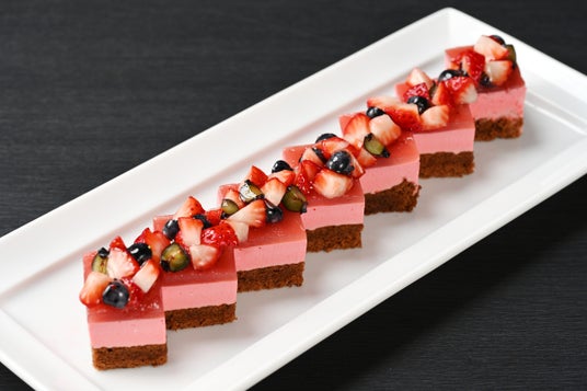 苺の甘酸っぱさとカカオのほろ苦さが美しく調和した「苺と濃厚カカオのマリアージュ」。しっとりとしたスポンジに、なめらかな苺ムースとジュレを重ねました。層ごとに異なる食感と味わいを楽しめる贅沢な一品です。