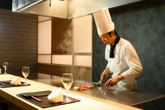 ◼︎12階「鉄板焼き空桜SORA」当ホテルの最上階、落ち着きのあるカウンター席でシェフが目の前で一品一品を丁寧に焼き上げる鉄板焼きレストランでは、芽吹きの季節の食材を臨場感たっぷりに焼き上げるディナーコースをご提供いたします。