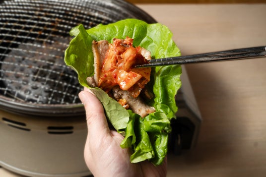 焼いて、包んで、ガブっと幸せ(ハート) 豚カルビ×キムチの王道コンボ。