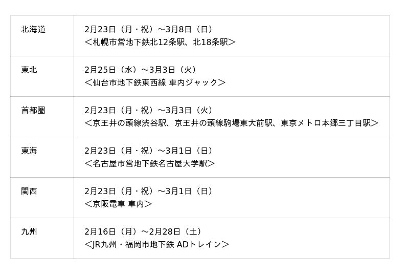 河合塾は、国公立大入試を控えた全国の受験生を応援する交通広告を、2月23日(月・祝)*から主要都市の駅や電車内に掲出します。夢に向け、これまで頑張ってきた受験生が試験当日に力を発揮できるようにと、全国の校舎スタッフと講師が願いを込めたメッセージを掲出。試験会場に向かう道のりで目に留めていただき、受験生の挑戦を後押しします。
