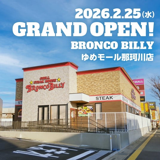 昨年12月にオープンしたブロンコビリー古賀店に続き、福岡県6店舗目となるブロンコビリーゆめモール那珂川店が2月25日(水)11:00にオープンいたします。九州地区初のモール店として、地域の皆さまの日常に寄り添った店舗網の構築を推進し、さらなる地域密着型の事業展開を図ってまいります。