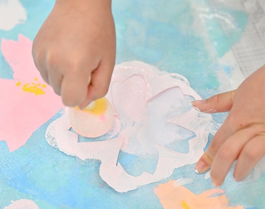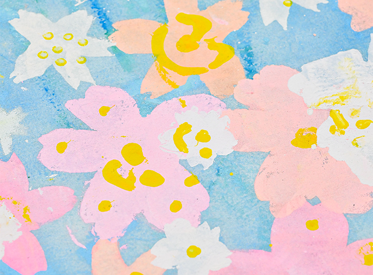 思い思いの形で表現し、絵の具で花を咲かせていきました