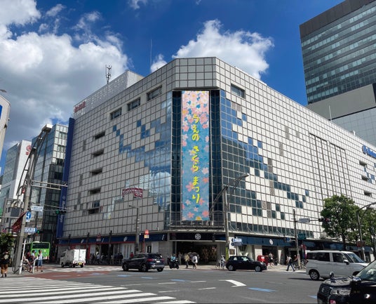 3/4(水)~4/7(火)に松坂屋上野店で開催される「上野さくらまつり」にて、この「むすびの旗」をメインビジュアルにした広告幕を掲揚するほか、8階で実物を公開、店内の各所に同デザインの装飾を施し、上野の街にお披露目いたします。