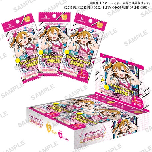 1.ブースターパック Anniversary 2026μ's、Aqours、虹ヶ咲学園スクールアイドル同好会、Liella!、蓮ノ空女学院スクールアイドルクラブに加え、A-RISE、Saint Snow、Sunny Passionなどライバルユニットのメンバーカードも初登場!