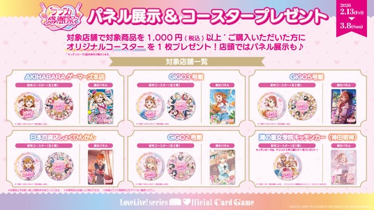 店頭では、ラブカ感謝祭で先行販売となる「ブースターパック Anniversary2026」の描きおろしイラストを使用したパネルを展示しておりますので、合わせてお楽しみください♪