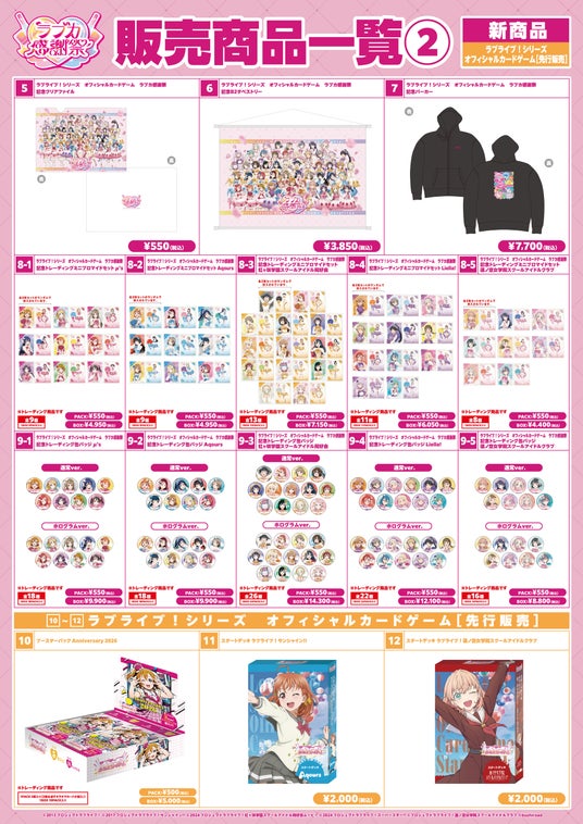 (C)2013 プロジェクトラブライブ! (C)2017 プロジェクトラブライブ!サンシャイン!! (C)2024 プロジェクトラブライブ!虹ヶ咲学園スクールアイドル同好会ムービー (C)2024 プロジェクトラブライブ!スーパースター!! (C)プロジェクトラブライブ!蓮ノ空女学院スクールアイドルクラブ (C)bushiroad