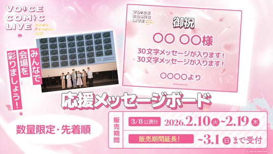 ご好評につき、出演者・原作者・スタッフ宛にお送りできる応援メッセージボードの受付期間を3月1日(日)まで延長します。