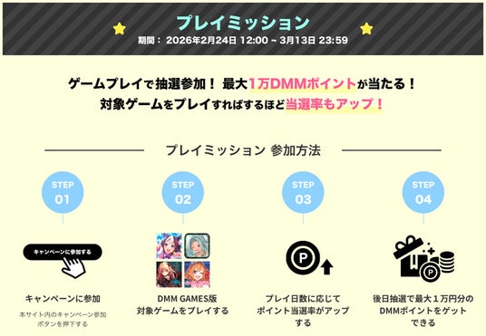 ■ゲームプレイで最大10,000DMMポイントが当たる!?プレイミッション
