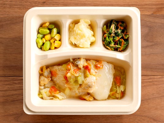 今回新登場する「白身魚とアサリのコンソメソース」は、白身魚にあさりの旨みを合わせ、キャベツを加えて春らしく仕上げた一皿です。やさしい味わいで食べやすく、魚のふっくらとした食感をお楽しみいただけます。旨みたっぷりの魚介のとろみソースを浸してお召し上がりください。