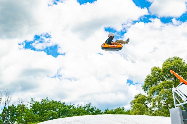 エアチューブに乗って滑り降り、巨大エアバッグの上にジャンプする「トビダスエア」です。