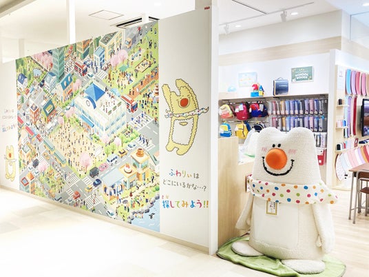 直営店ならではの楽しいデザイン♪店舗壁面に「ふわりぃをさがせ!」を展開!