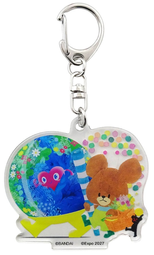 今回のコラボレーションでは、「くまのがっこう」の主人公ジャッキーと、GREEN×EXPO 2027の公式マスコットキャラクターのトゥンクトゥンクが共演。トゥンクトゥンクと絵本特有の温かみのある水彩タッチで描かれたジャッキーたちが、「花と緑」に包まれたGREEN×EXPO 2027の世界を楽しむ様子を、デザインとして表現しました。バッグやポーチにつけられる「アクリルキーホルダー」や、コレクションしたくなる「缶バッジ」など、大人から子どもまで癒やされる全5アイテム20種類を展開します。