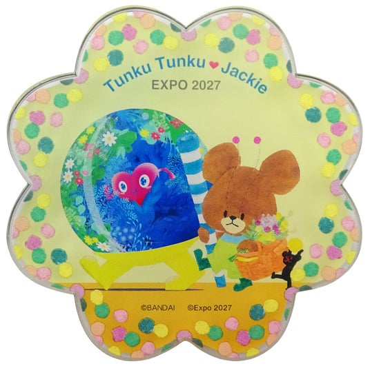 今回のコラボレーションでは、「くまのがっこう」の主人公ジャッキーと、GREEN×EXPO 2027の公式マスコットキャラクターのトゥンクトゥンクが共演。トゥンクトゥンクと絵本特有の温かみのある水彩タッチで描かれたジャッキーたちが、「花と緑」に包まれたGREEN×EXPO 2027の世界を楽しむ様子を、デザインとして表現しました。バッグやポーチにつけられる「アクリルキーホルダー」や、コレクションしたくなる「缶バッジ」など、大人から子どもまで癒やされる全5アイテム20種類を展開します。