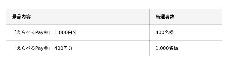 ※ 「えらべるPay(R)」は、株式会社ギフティが提供するデジタルギフトであり様々なスマホ決済サービスポイントの中から贈呈された「ギフトポイント」内でお好きな商品と交換することができます。「えらべるPay(R)」および「ギフトポイント」の利用には会員登録やアプリダウンロードの必要もなく、保有ポイント内で複数の決済サービスポイントを選ぶことも可能です。