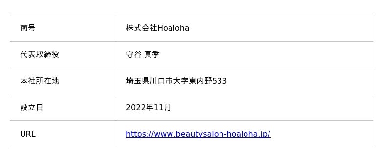 Hoalohaは、埼玉県川口市でネイルビューティーサロン事業を展開しています。個人事業として創業後、法人化を経て、地域に根付き地元で愛される店舗づくりに努めてまいりました。