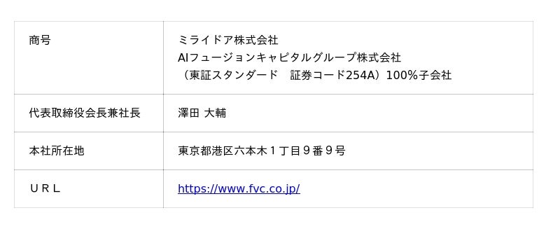 ミライドア株式会社(本社:東京都港区、代表取締役会長兼社長:澤田 大輔、以下「ミライドア」)は、埼玉県・株式会社日本政策金融公庫(以下「日本政策金融公庫」)と連携し、埼玉県内の地域金融機関等と共同で設立した埼玉県渋沢MIXイノベーション創出支援投資事業有限責任組合(以下「埼玉県渋沢MIXイノベーション創出支援ファンド」)より、株式会社Hoaloha(本社:埼玉県川口市、代表取締役:守谷 真季、以下「Hoaloha」)に投資を実行しましたことをお知らせいたします。