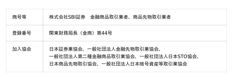 SBI証券で取り扱っている商品等へのご投資には、商品毎に所定の手数料や必要経費等をご負担いただく場合があります。また、各商品等は価格の変動等により損失が生じるおそれがあります(信用取引、先物・オプション取引、商品先物取引、外国為替保証金取引、取引所CFD(くりっく株365)、店頭CFD取引(SBI CFD)では差し入れた保証金・証拠金(元本)を上回る損失が生じるおそれがあります)。各商品等への投資に際してご負担いただく手数料等及びリスクは商品毎に異なりますので、詳細につきましては、SBI証券WEBサイトの当該商品等のページ、金融商品取引法等に係る表示又は契約締結前交付書面等をご確認ください。