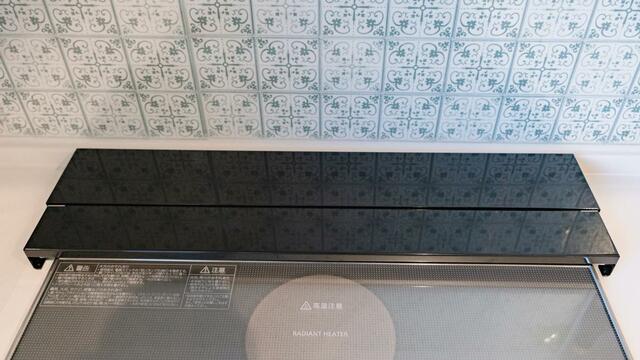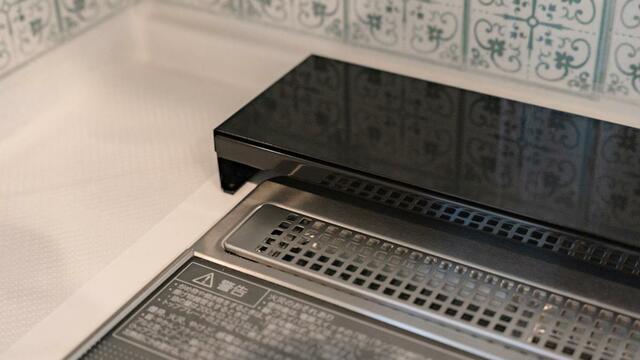 グリルを使用するときは、手前のカバーを奥にスライドするだけのワンタッチ操作。