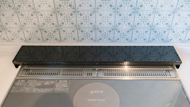 一般的なシステムキッチンの壁から排気口までをしっかりとカバーしてくれるので、油や調理くずが溜まるのも防いでくれ、掃除も楽ちんに。