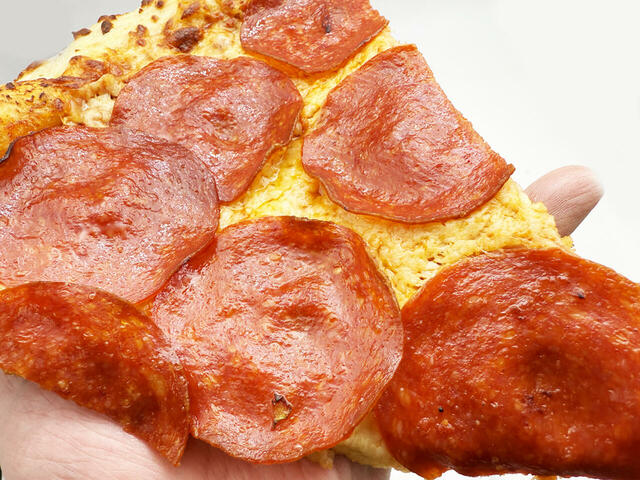 まず最初は、2026年も継続ラインナップされたど定番メニューの「ペパロニ」をいただきます。