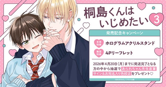 ホーリンラブブックスではあられちゃん先生最新コミックス『桐島くんはいじめたい(3)』発売を記念して、豪華キャンペーンを実施いたします!