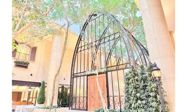 まるで屋外のような雰囲気ですが、光を取り入れるドーム型の屋根があるので、お天気を気にすることなくフラワーシャワーでお祝いができます。