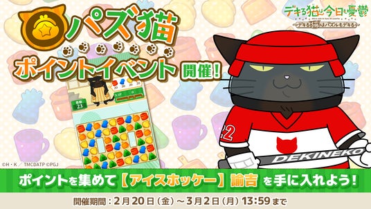 ポッピンゲームズジャパン株式会社(本社:東京都港区、代表取締役 CEO:谷口祐一郎)は、TV アニメ「デキる猫は今日も憂鬱」(略称:デキ猫)の新作スマートフォン向けパズルゲーム「デキる猫は今日も憂鬱~デキる猫はパズルもデキる~」(略称:パズ猫)がゲーム内イベントを開催することをお知らせいたします。