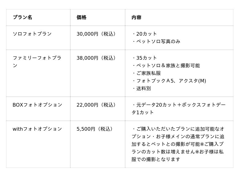 「うちの子撮影」プランについて、詳細はスタジオコフレのホームページまたは公式Instagramをご覧ください。
