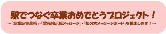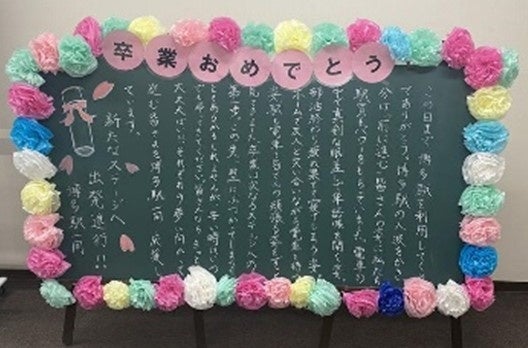 卒業という人生の大切な節目を迎える皆さまに、「おめでとう」の気持ちをお届けしたい。その ような想いから、博多駅で働く駅員が心を込めて本プロジェクトを実施いたします。 仲間とともに勉学や部活動、学校行事に全力で取り組んだ学生生活は、かけがえのない宝物です。 ご来駅の皆さまにも、ご自身の学生時代を振り返りながらお楽しみいただければ幸いです。