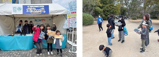 イベントでも中高生は運営スタッフとして参加し、各所に置かれた謎解きヒントパネルの前でイベント参加者へ声掛けをし、海洋ごみについて主体的に発信していました。